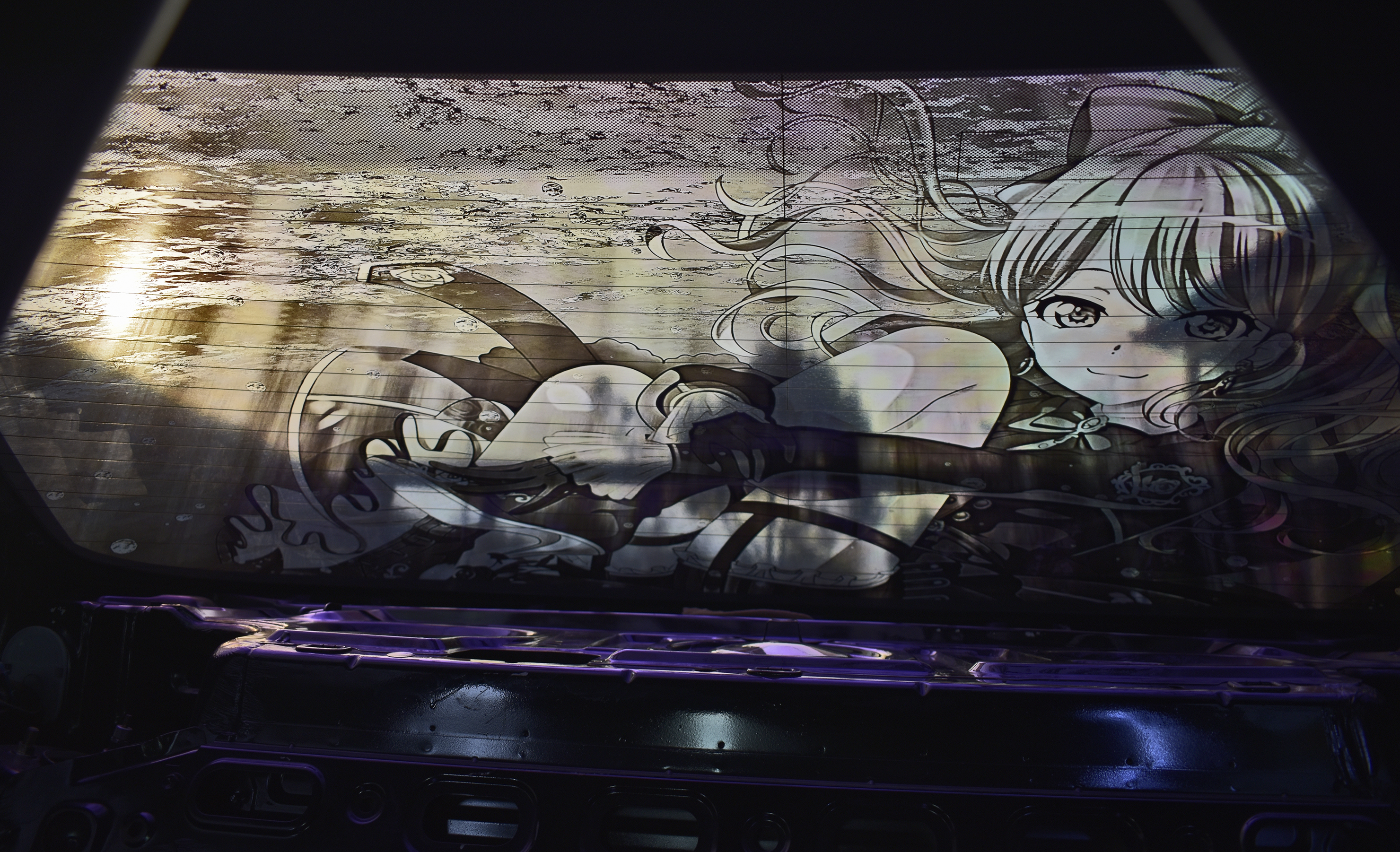 移転後 新商品の発売を開始します!! 移転後は作業環境が大幅にアップデートされますので、 カーフィルムとラッピング技術を組み合わせた新しい表現や、 透過するハチマキステッカー、 脱着式のハチマキステッカー、 ロングライフのタイヤレターなど新商品の一般取り扱いを開始いたします。 後程専用ページを製作いたします。 カーフィルム×ラッピングの新技法 車内からは透けて見えます☆彡